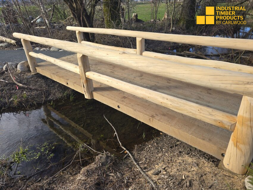 Timber Bridge with special Yellow Cedar log handrails
